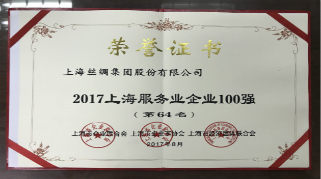 公司獲得2017年度中國(guó)服務(wù)業(yè)企業(yè)500強(qiáng)、上海市服務(wù)業(yè)企業(yè)100強(qiáng)稱號(hào)