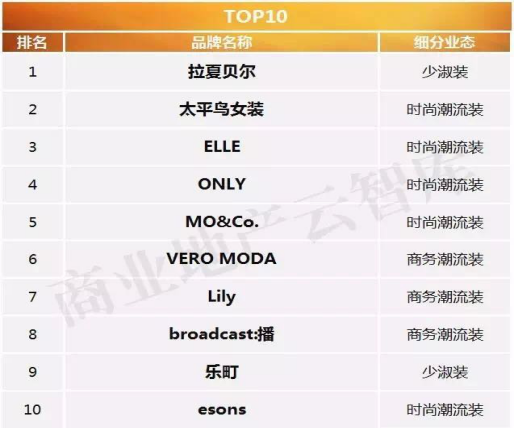 在2016年度購(gòu)物中心關(guān)注女裝品牌榜TOP50中,LILY品牌位列總排名第七,商務(wù)潮流裝第二,可喜可賀。