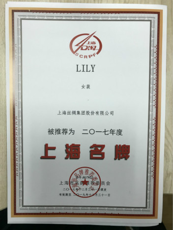 LILY won the award for the 2017 the well-known brand of Shanghai